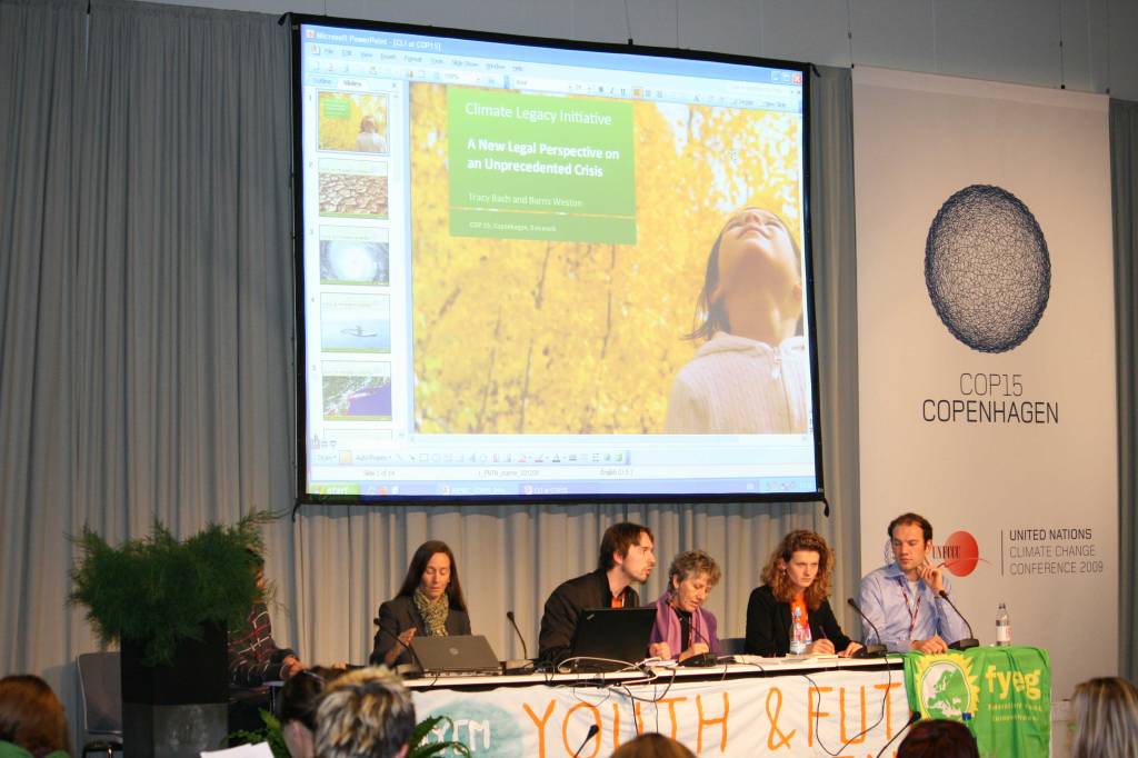 In 2007, I began focusing my teaching and research on climate change when I became Associate Director and Senior Research Fellow of the Climate Legacy Initiative (CLI). The CLI was a two-year, grant funded research project that sought to show how existing laws that impose duties on current generations to protect future generations could apply to climate change mitigation and adaptation. The project published a white paper, Recalibrating the Law of Humans with the Laws of Nature: Climate Change, Human Rights, and Intergenerational Justice, in 2009. That year, I traveled to COP15 in Copenhagen – my first COP – to present its key findings at a side event organized by the EU on the “young and future generations” thematic day.